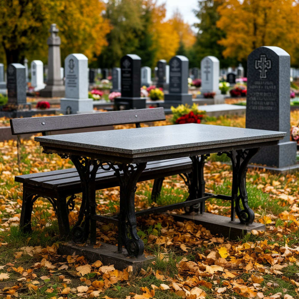 Стол и лавка на кладбище